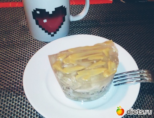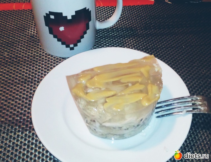 Ужин: холодец из курицы ( грудки), зелёный чай.