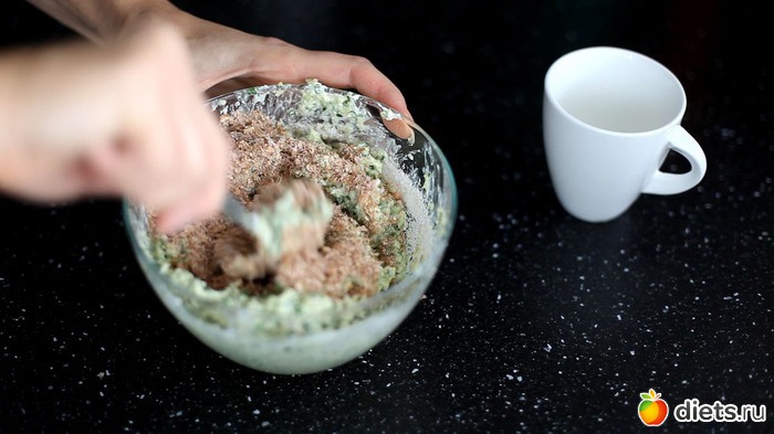 Цуккини измельчить в блендере или потереть на мелкой терке.
