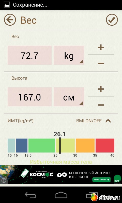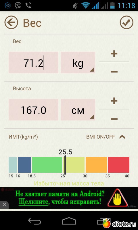Вес сегодня 62,3, ИМТ - 25 ровно.