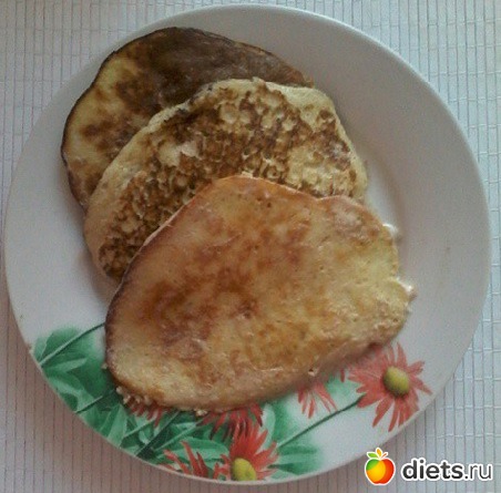 Вот такое простое и не сильно калорийное блюдо! Из данного количества продуктов получается около 6 средних оладьи. Если брать как на картинке, то штуки 3-4.