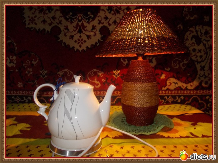 Сегодня я посетила распродажу местного Посудоцентра и купила плетеную настольную лампу, керамическо-электрический чайник и новую гладильную доску (старая колченогая совсем развалилась).