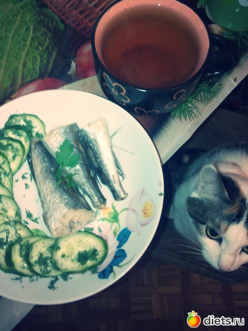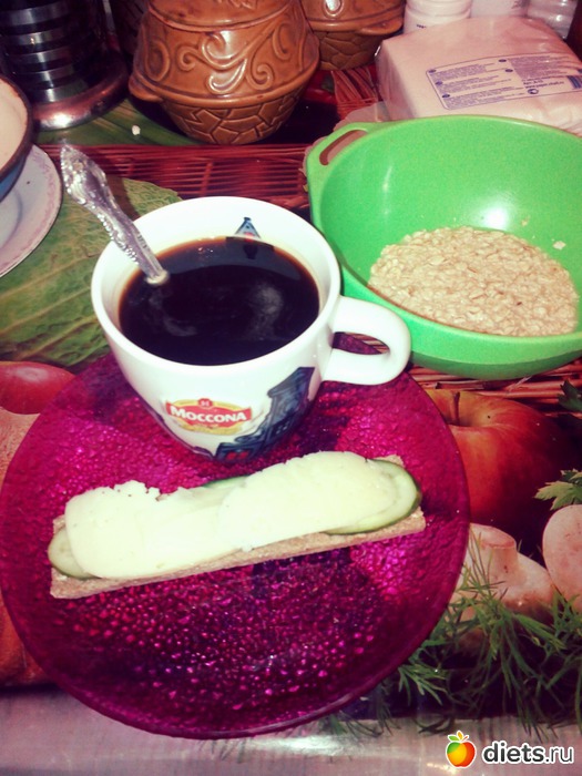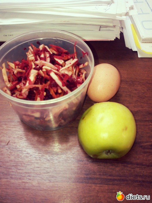 Ещё вареное яйцо было съедено, половинку яблока так же не осилила