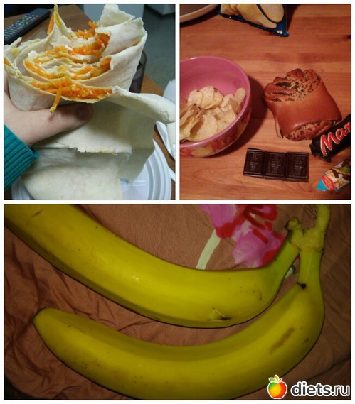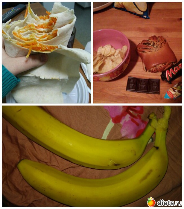 У: грамм 50 чипсов, булочуа с макой и 2 конфетки + полоска шоколада...