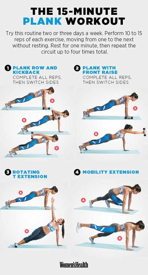 Это упражнение одновременно укрепляет мышцы пресса и спины, что обеспечит идеальную осанку. Старайтесь напрягать не только пресс и мышцы спины, но также и мышцы ног и ягодиц. Только так возможно сохранить прямую линию от плеч до пяток, что в свою очередь пывысит эффективность упражнения. Необходимо прочно удерживать положение, не расслабляясь ни на секунду. В позе Планки нужно оставаться в течение 1 минуты. В дальнейшем можно попыться поднимать одну ногу параллельно полу.