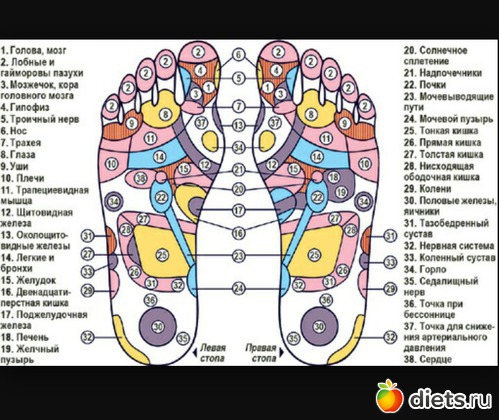 можно с помощью воздействия на проекцию этого органа на стопе.