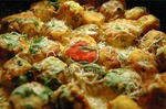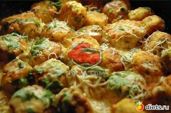 Куриное филе слегка отбить и мелко порезать, затем добавить мелко шинкованный лук, посолить, поперчить по вкусу, влить взбитое в пену яйцо и хорошенько перемешать. В форму для запекания вылить немного кефира. Из приготовленной массы формировать небольшие шарики и выкладывать их в форму. Запекать в разогретой до 180 °C духовке 10-15 минут. Тем временем приготовить заливку: сыр потереть на мелкой терке, выдавить в него чеснок и смешать с кефиром. Вынуть форму с запекаемыми шариками из духовки, полить заливкой каждый шарик и вновь поставить в духовку еще на 15-20 минут.