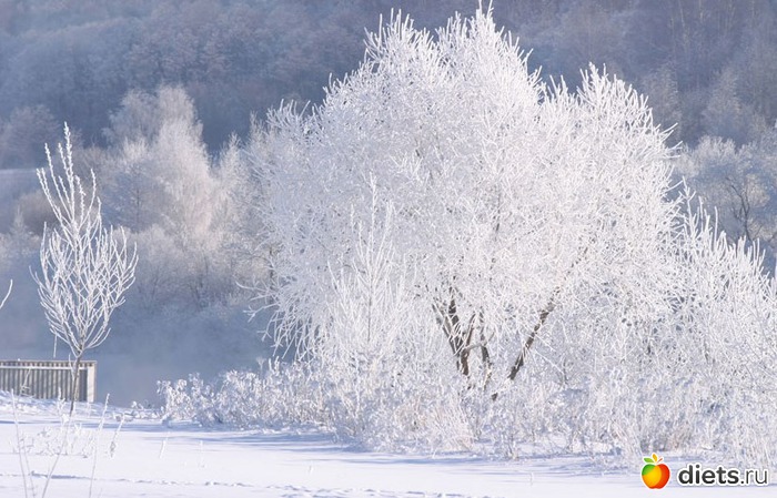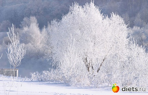 А у нас особенность зимнего пейзажа на фоне снежной земли голые деревья - вечно-зеленые не растут из-за летней жары, инея нет из-за сухого климата, а банально снег не держится из-за постоянного ветра