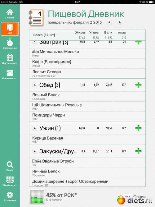 Правда пока не разобралась как например записывать готовые блюда, например омлет или овсяные оладушки))