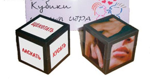 в наборе вобще три кубика - с надписями, с муж частями тела, с жен частями тела. мне то конечно больше жен кубик нравица