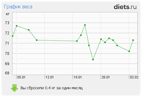 )Жду! А пока в моём похудении только попытки, но даже попытки это тоже хорошо(оправдания что ли?), может мои попытки всё же перерастут в пожизненое похудении, ну т. е. в нормальное похудение