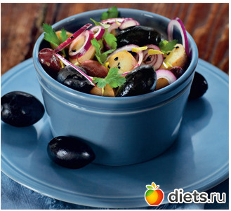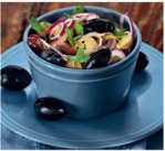 Этот салат получится очень красочным, если вы добавите ассорти из маслин и оливок разного размера. Чаще всего такое ассорти имеет греческое происхождение – но ничего страшного, главное, чтобы маслины и оливки были с косточками. Лучшие из лучших продаются в стеклянных банках, консервированные в оливковом масле (его можно смело использовать для заправки).