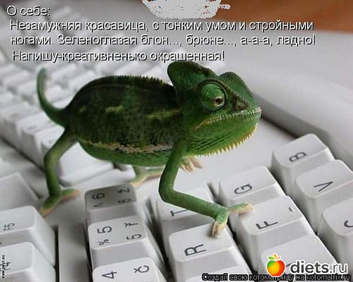 — У нее сейчас все калории посчитаны: сорок таблеток "Тик-так" на завтрак, семьдесят на обед и тридцать на ужин. Зато вес почти постоянный, дыхание свежее. Правда, слабое...