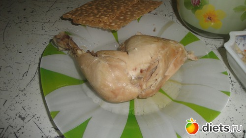 О:отварная курица и салат из капусты +бульон и хлебцы