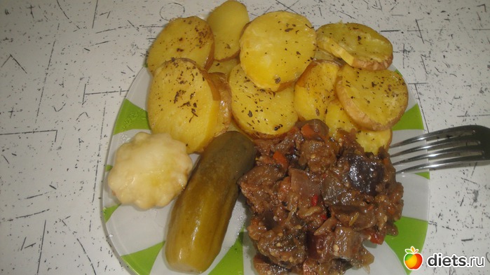 О:картофель 2 шт запеченный в микроволновке (соль, перец, травки, масло подсл)+ консервированные огурец, патиссон и икра баклажанная