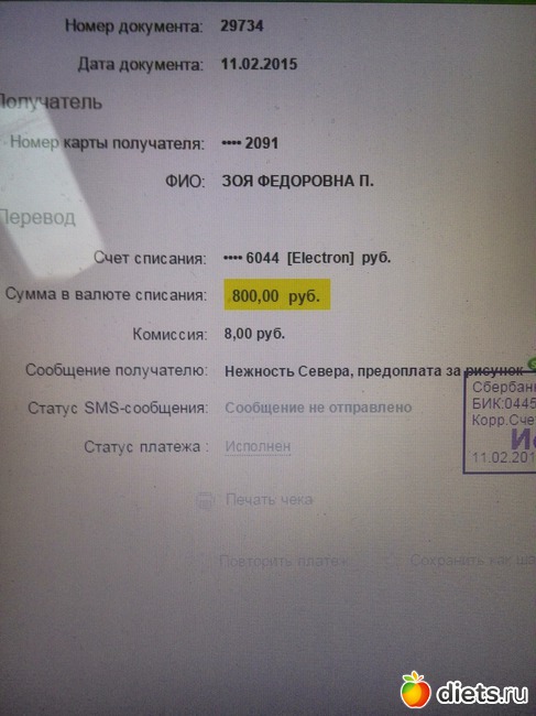 4. Я вам выслала 800р. Фото выставляю ниже, потому что СМС вы явно не получили.
