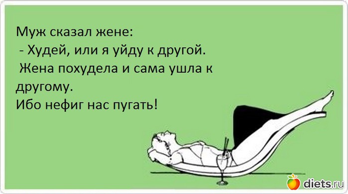 А их слова только бесят!!!Я своему каждый раз говорю-я сама вижу,что и когда нужно делать,а то что ты мне делаешь замечания-только бесишь и отворачиваешь от себя.И заганяешь в комплексы и в постели и просто переодеться.Всё-таки с молоду воюю постоянно с этим весом.Если бы не боролась,уже была бы колобком.