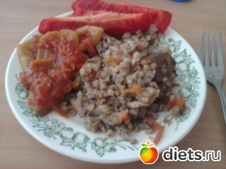 Обед: гречневая каша с кусочком курочки, перец болгарский, лечо.