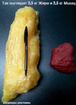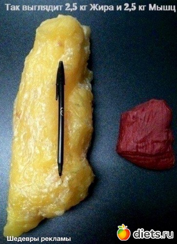 Для сравнения 2,5 кг жира и 2,5 кг мышц ( использовано из Шедевры рекламы)