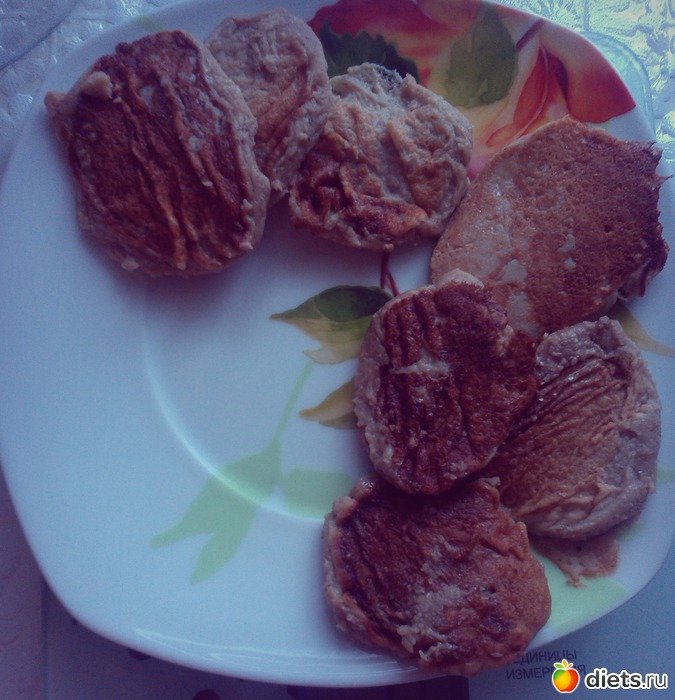 Готовила с овсяной цельнозерновой мукой, поэтому они слегонца горчили. Но это было оооочень вкусно. Стрескала грамм 170, не меньше. Ну, катастрофы нет, калорий там не больше 100 на 100 грамм продукта.