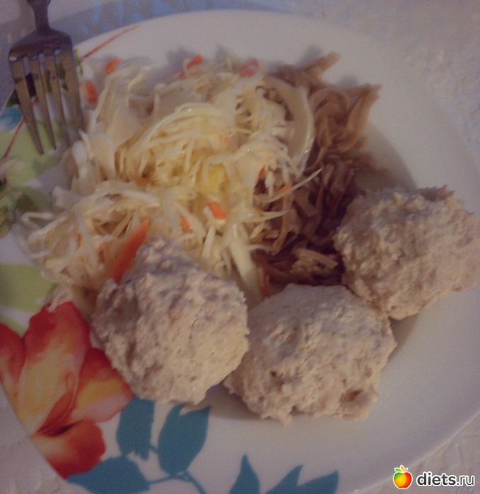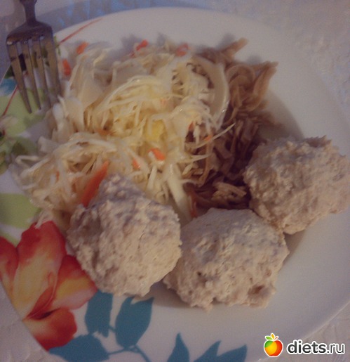 три куриные котлеты на пару, ц/з лапша и квашкапуста. Котлеты не удались, вышли суховатыми, нужно было ещё яйку кидать.