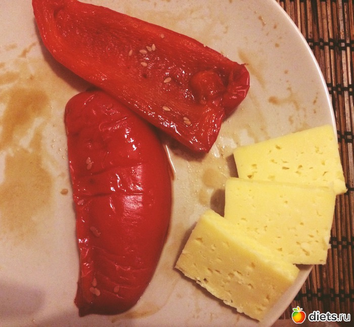 Отведала остатки овощей на гриле - 2 перчика, сырок