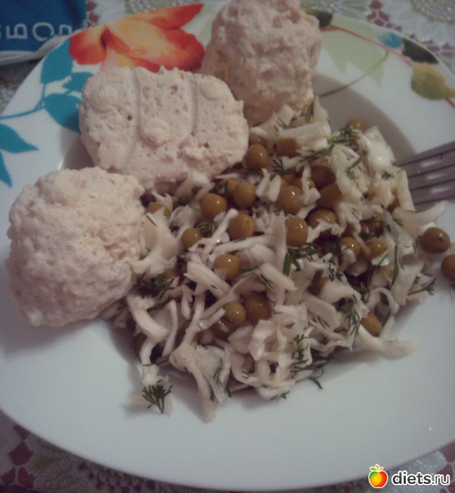 Доела салат сегодняшний и котлетки вчерашние. Привезла их к маме, потому что решила не напрягать её мыслями о том, что бы мне такого ПП-шного и диетического соорудить