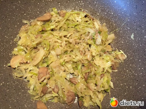 у меня кабачки свежие, просто в муке обваляла для порядка! А на втором молодая капуста ( в 7 континенте - 36 руб. Кг) потушила с мороженными шампиньонами.. Сын съел 1/3 всей еды!