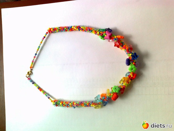 Колье "Лето" Вот связала колье для дочки. Это вязанный жгут. Я бисером давно занимаюсь, буду периодически отчитываться о проделанной работе))))