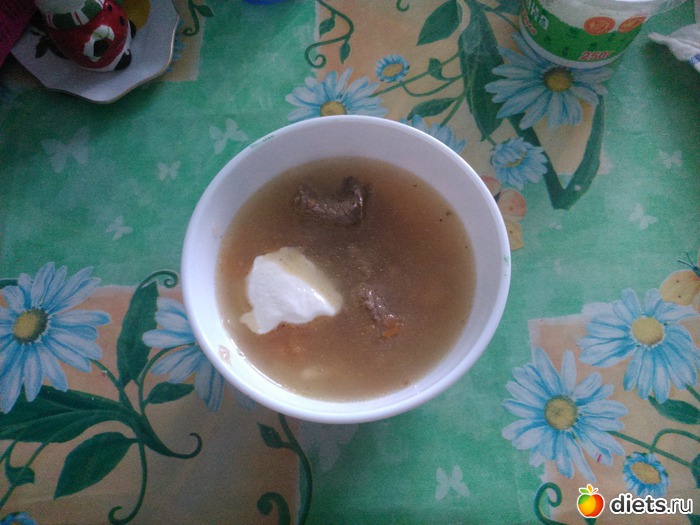 Ужин - суп из говядины с ложкой сметаны... Читать полностью