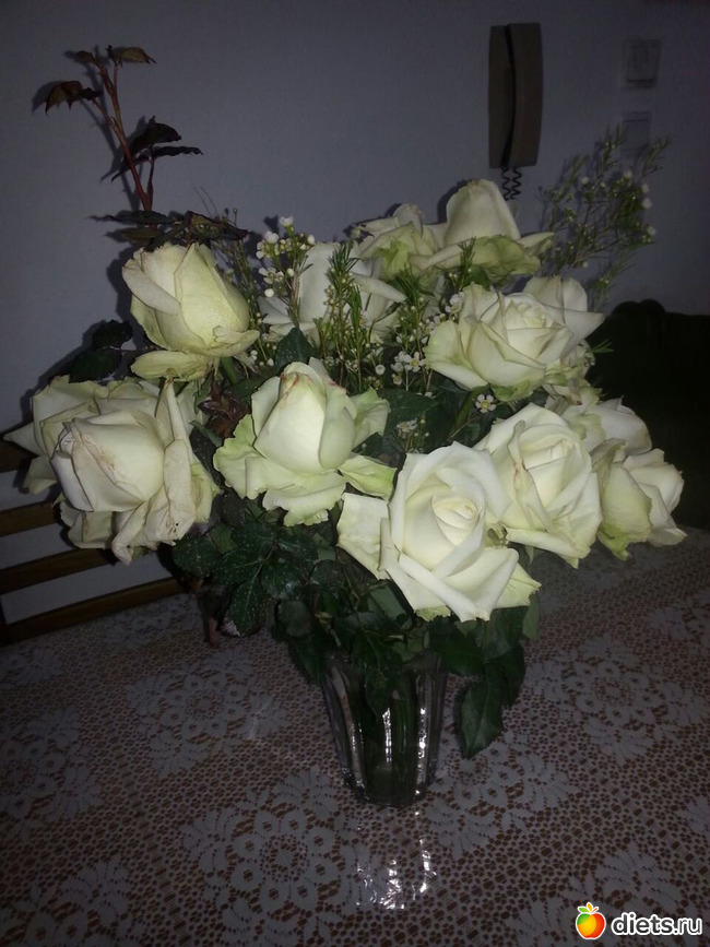 , всё таки полнота, скрывает морщины.. А букет мне муж подарил на годовщину свадьбы, всю неделю стоял, а выглядет, как будто сегодня сорвали, говорит потому что от чистого сердца.