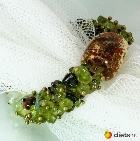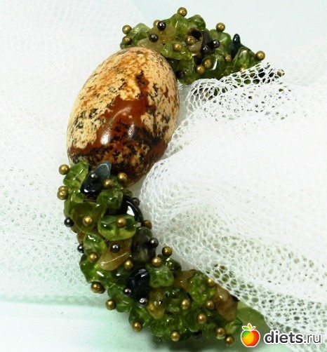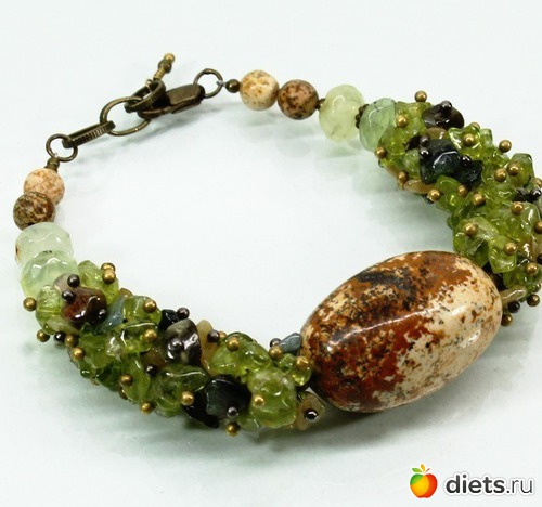 Браслет ручной работы, из невероятно красивых камушков - хризолитов, пейзажной яшмы...