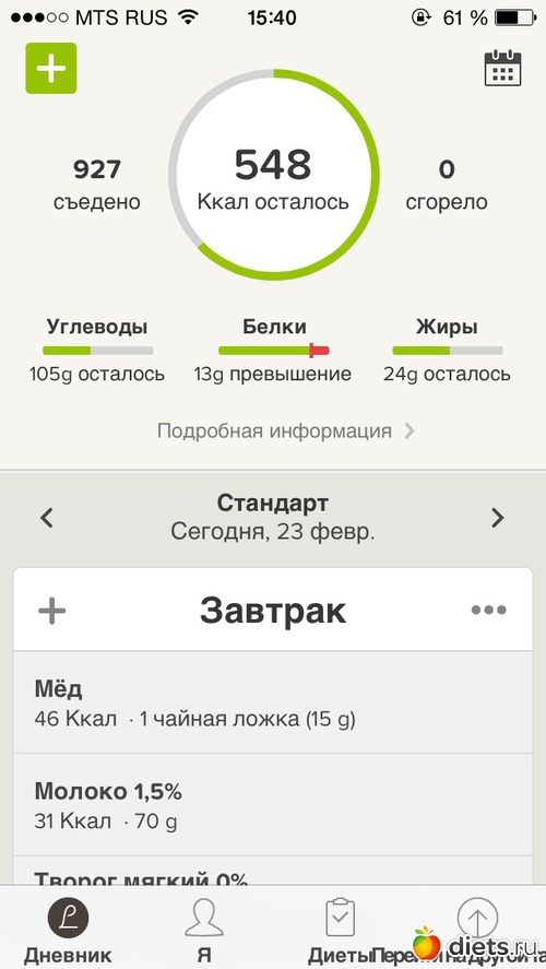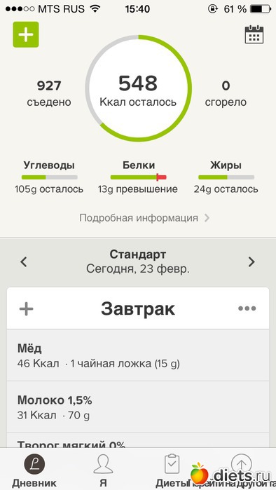 Но как видите белки я уже на 13 грамм сегодня привысила. И планируется еще творог! Ну это белковый день