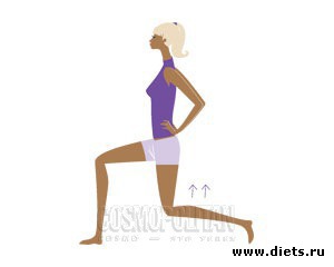 Более сложный вариант – совместить первое и второе упражнения: делая выпад, добавь наклон корпуса.