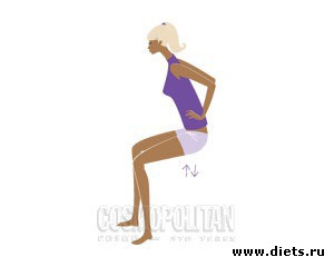 На вдохе согни ноги в коленях до прямого угла, при этом отведи таз назад (как будто хочешь сесть на низкий стул позади тебя), на выдохе – вернись в и. п.