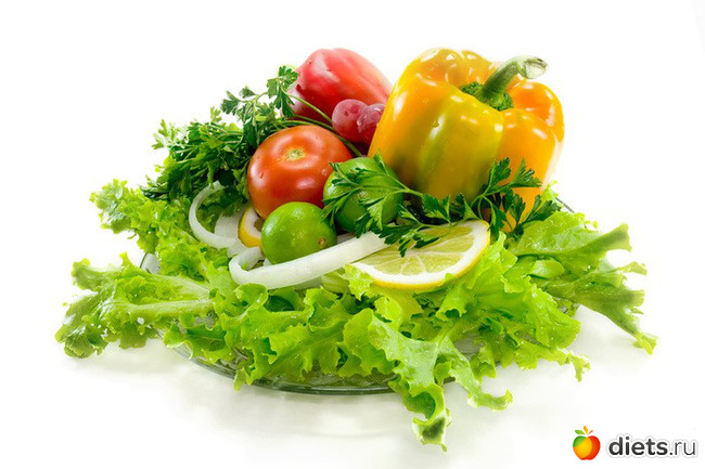 Салаты из овощей и зелени, нежирный кефир, диетический творог, диетическое мясо, фрукты, овощи, чай, соки, компоты, морсы.