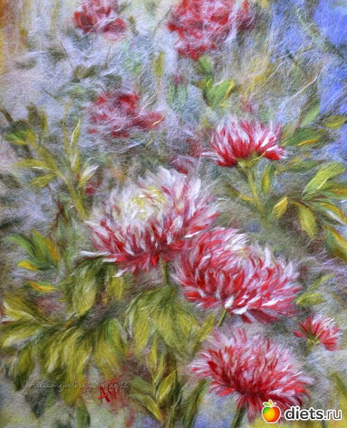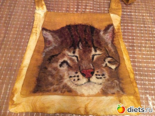 Вот мой последний опыт, более-менее получившийся, делала не картину, а изображение на валяной сумке