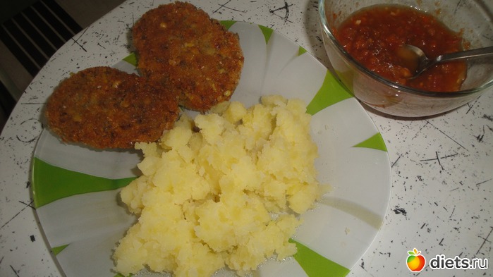 картофельное пюре без масла + котлетки из чечевицы +аджика