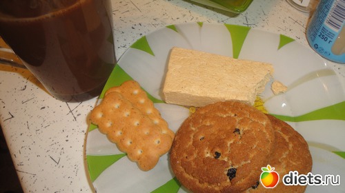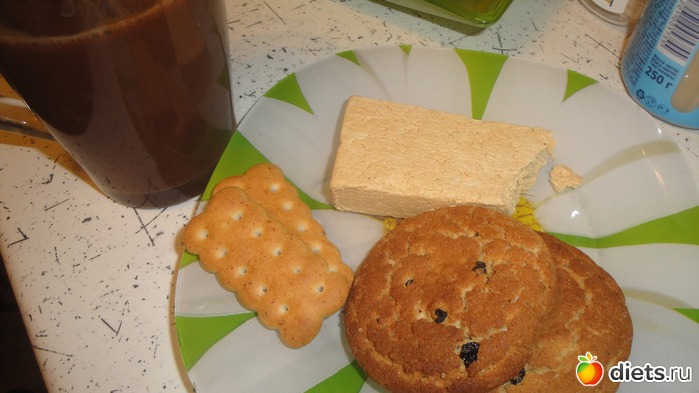 У: халва из арахиса +постное печенье, постного шоколада не нашла, заварила себе какао без молока и сахара, пила в прикуску с халвой, не очень вкусно было.