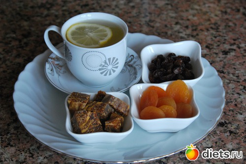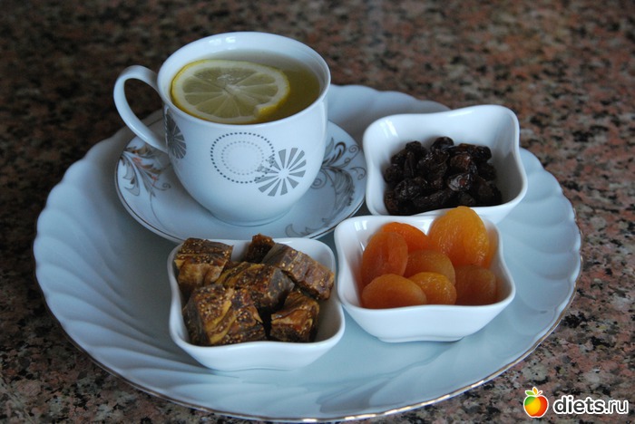 zavtrak:zelenii ceai bez sahara i suhofrukti