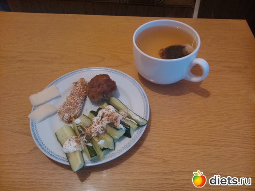 Ужин - кусочек обеденной куриной грудки, огурец с нат. йогуртом + жарила мужу котлеты и так мне захотелось, конечно она не диетическая, но маленькая (60г) и очень вкусная... Чай...