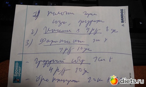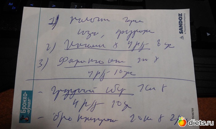 Привет всем! Заболел мой сыночек в очередной раз... Проще сказать сколько по времени он не болел, потому как это редко, иммунитет ни к черту! Ему 15 рост 173, крупный такой и на вид здоровый, НО болеет постоянно Сегодня вызвала врача и ушла на работу. Врач был, написал чем лечить. Я с работы звоню и говорю сыну - Прочитай что он там написал, заеду в аптеку. А в трубке ржач