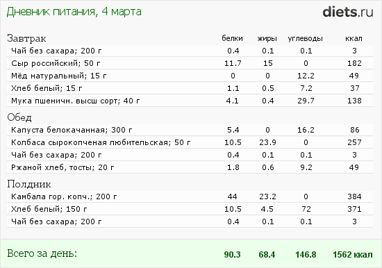 А калораж - в пределах 1000-1200. Организм не обманешь!