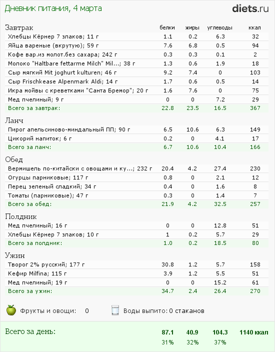 Вес на месте, что меня немного расстроило, учитывая долгую прогулку с дочей и отсутствие обжорства. Ну да ладно, справимся, завтра точно будет неплохой отвес.