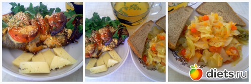О- Рыба язь в духовке, овощи тущеные + сыр( ну оч. я соскучилась) (на обед пол рыбки и на ужин пол рыбки) +хлеб и овощной бульон( мясного нет)