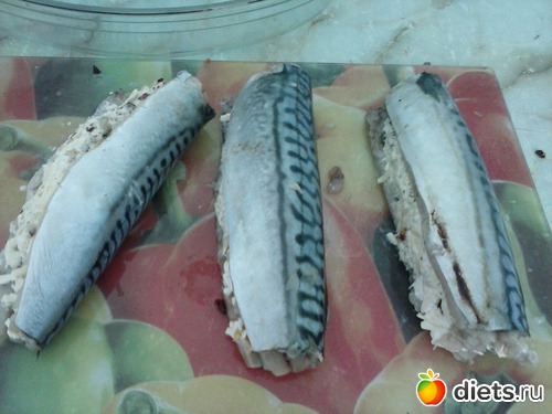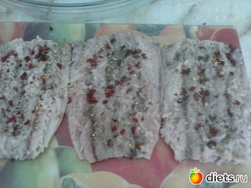 Начинка: 2 сваренных яйца и один плавленный сырок.Зелени много и чеснок.Сыр обязательно плавленный,он не плавится, и получается очень сочная начинка.Филе рыбы посолить,поперчить.Я положила приправу для запекания рыбы.