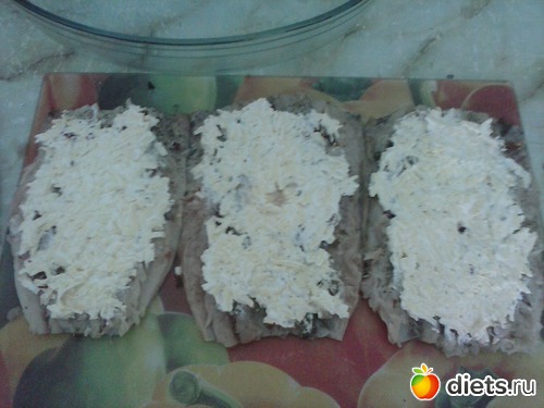 3. Мясо по французски с грибами и помидором под нежирным сиром.