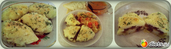 О- картофельные зразы с грибами ( без яиц муки и сметаны) + овощи + бульон который я так и не выпила + хлеб