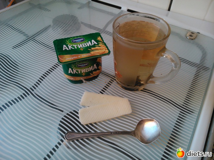 Завтрак - Активиа, немного сыра, зеленый чай...