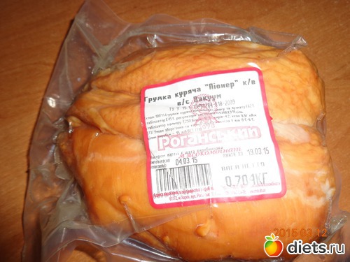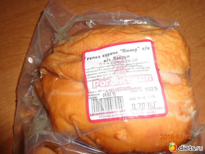 Пошуршала по дому, наготовила кушать семье. Сходили с малышом на прогулку и в магазин. В магазине мне до одури захотелось колбасы, но почитав состав, поняла что эмульгаторов в обнимку с соевой мукой и прочей какой я есть не хочу. Что интересно, даже в самой дорогой колбасе было куча химическых ингредиентов. Поэтому купила самый безобидный, а мой взгляд, вариант - копченую куриную грудку.