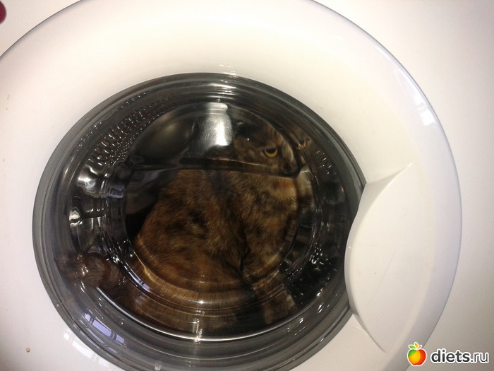 Вот уж кошке досталось !!! Хорошо машинку не включила